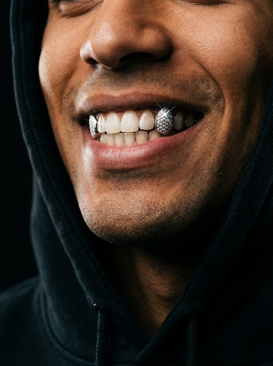 Premium grillz for him, crafted in gold, silver, and diamond finishes.