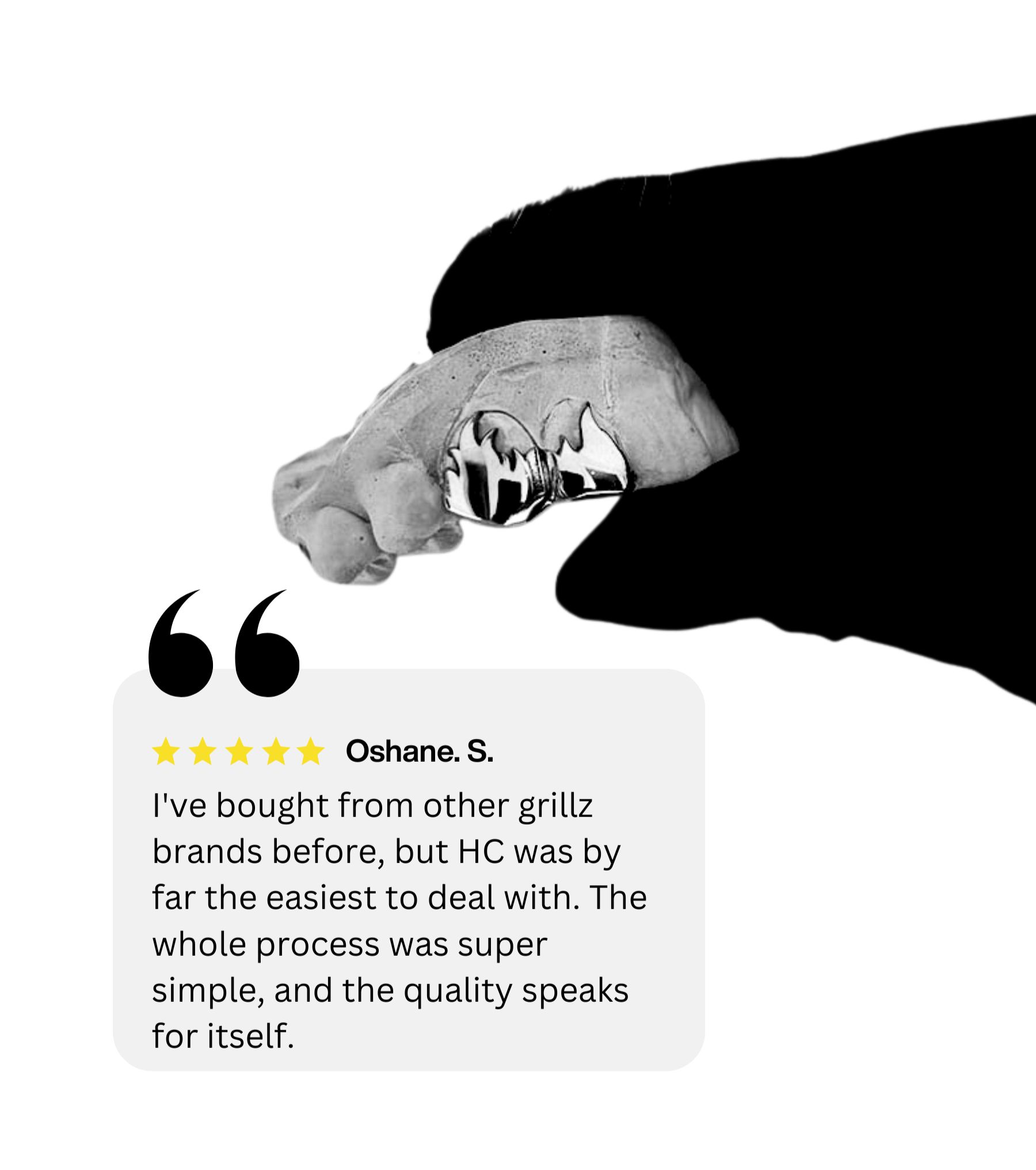 When you place an order for a set of gold or silver grillz there will be a form with a diagram for you sent with your HC grillz mould kit in the mail where you can mark exactly which teeth you want for your custom grillz!
