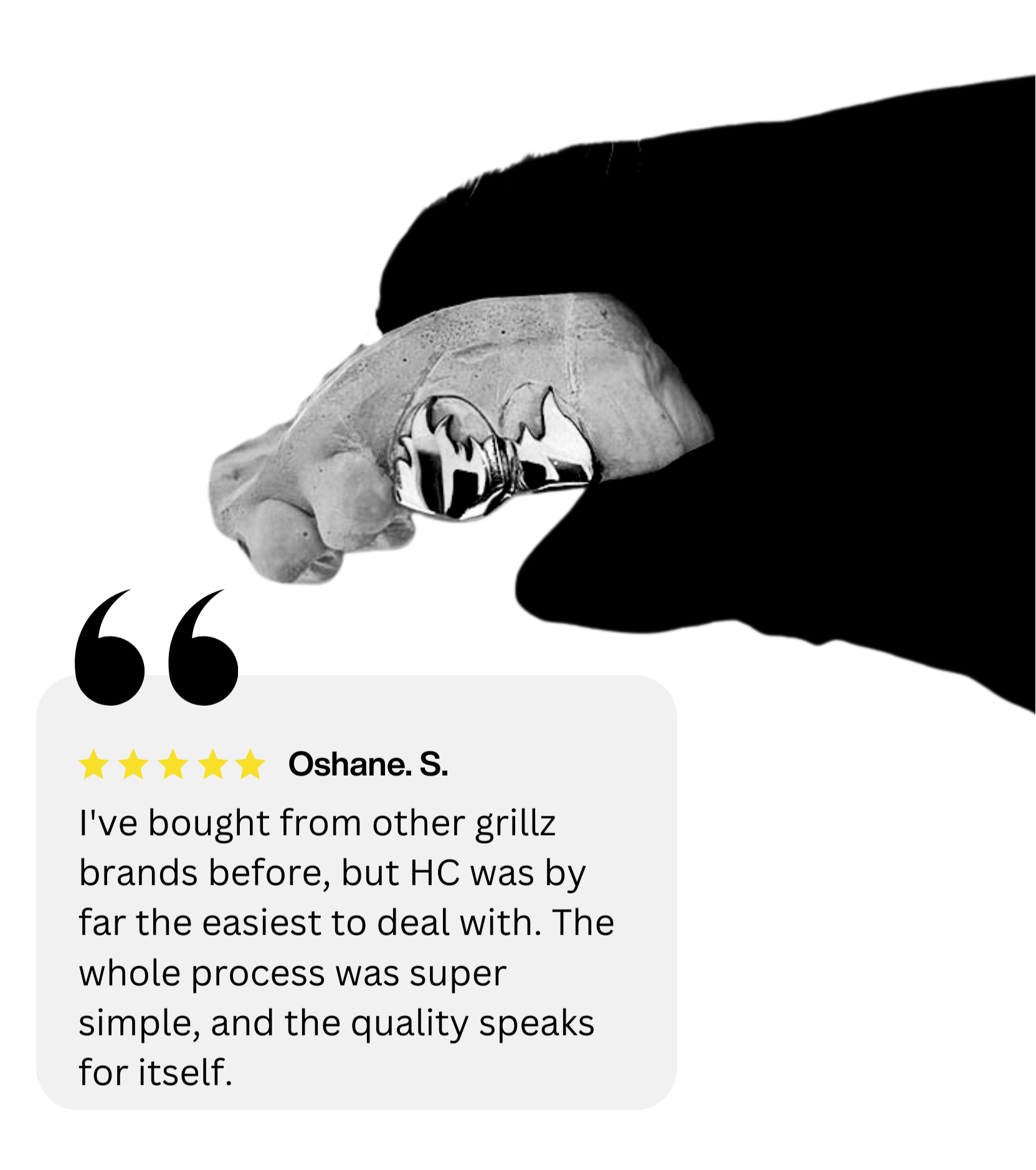 Get your dream custom grill — handcrafted, guaranteed to fit, and backed by our Free Remold Promise. Every order comes with a custom mold kit, a lifetime warranty, and is handmade by our master jewelers who craft pieces for some of the world’s most exclusive clients.