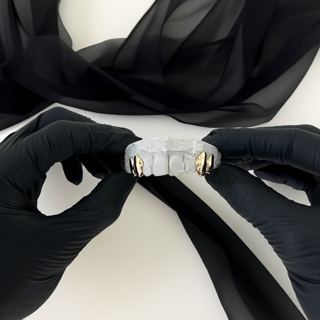 Fabricamos las parrillas perfectamente según el modelo de tus dientes para que queden bien ajustadas y ajustadas, de esa manera las parrillas personalizadas se mantendrán en su lugar con retención como una tapa.