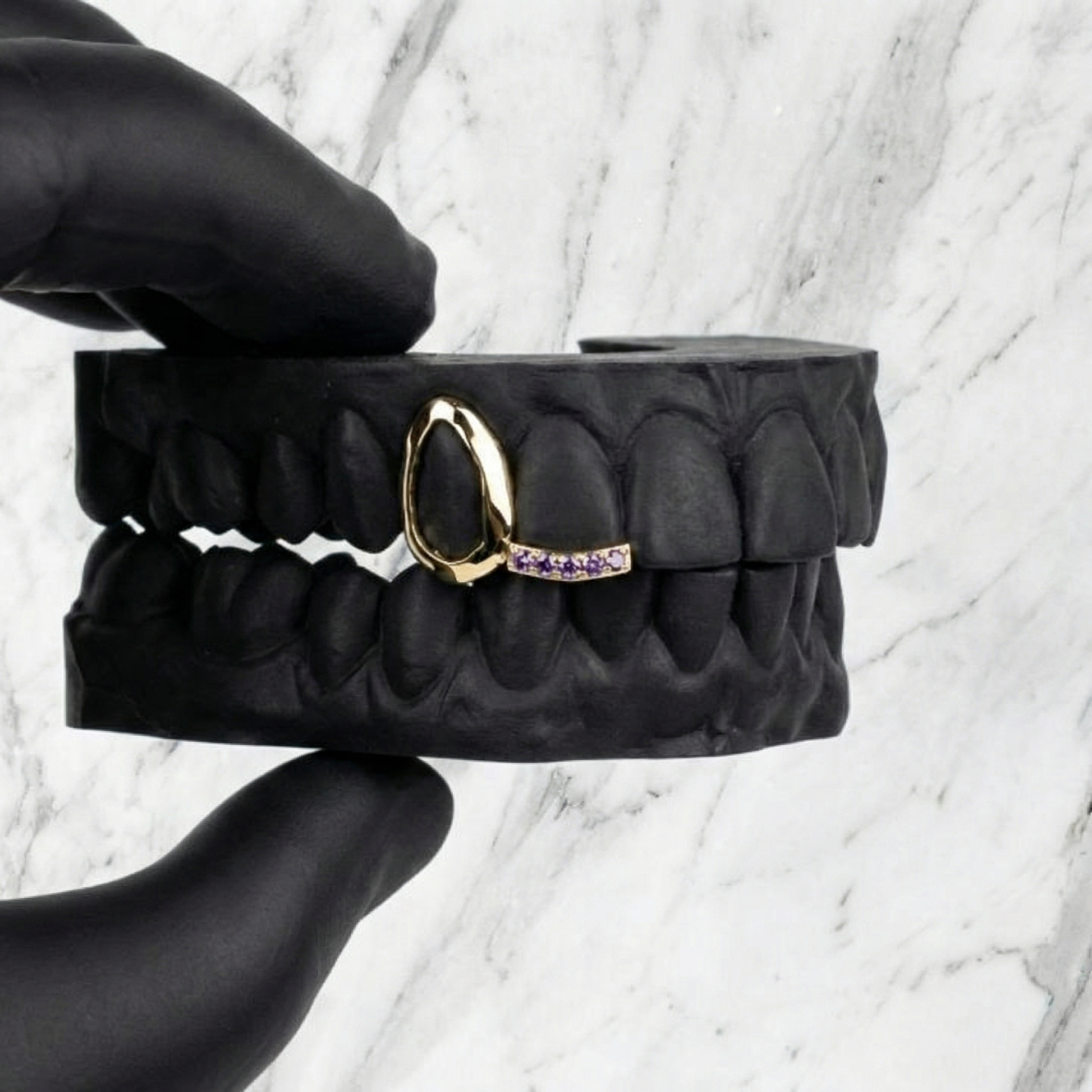 We create everything from simple gold grillz and silver grillz to fully iced-out diamond grillz. Whether you want a single tooth cap, a six-piece set, or a full eight-top, eight-bottom grill, HC Grillz can make it. Our designs are inspired by hip-hop, streetwear, and luxury culture, making them the ultimate statement piece.
