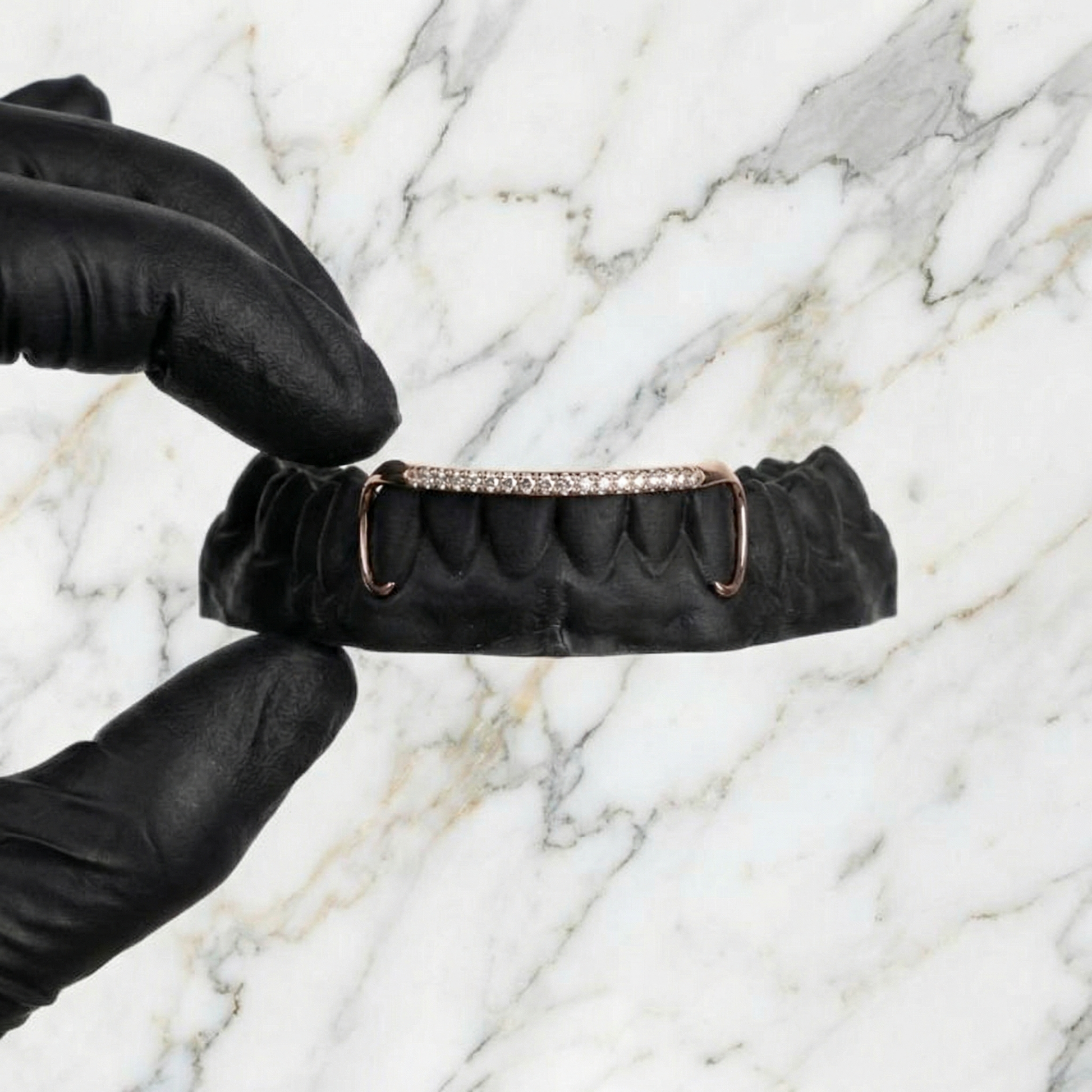 We make the grillz perfectly to the model of your teeth so they're nice and tight that way the custom grillz will just hold in place with retention like a cap!