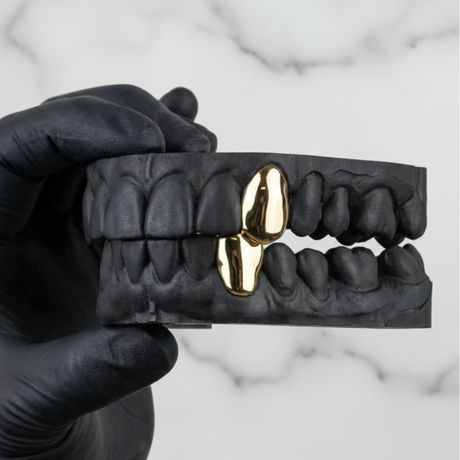 At HC Grillz, we specialise in handcrafted gold grillz and silver grillz designed for a perfect, custom fit. Every piece is made with real materials — solid gold, sterling silver, and genuine diamonds — so your grillz never tarnish, fade, or lose shine. Unlike cheap plated options, our custom grillz are built to last and backed by a lifetime warranty.