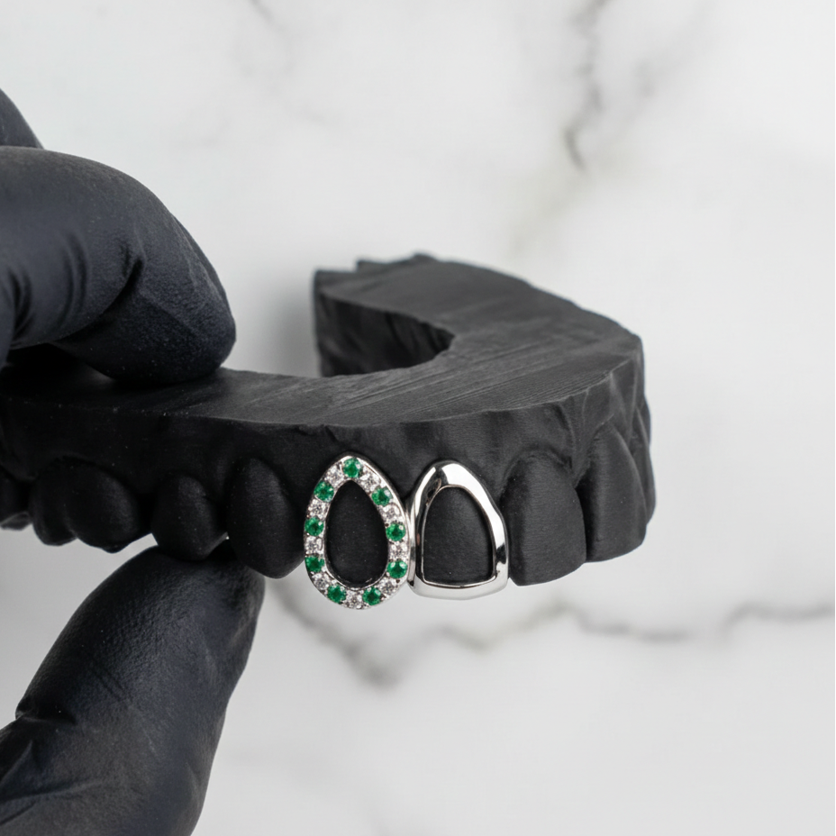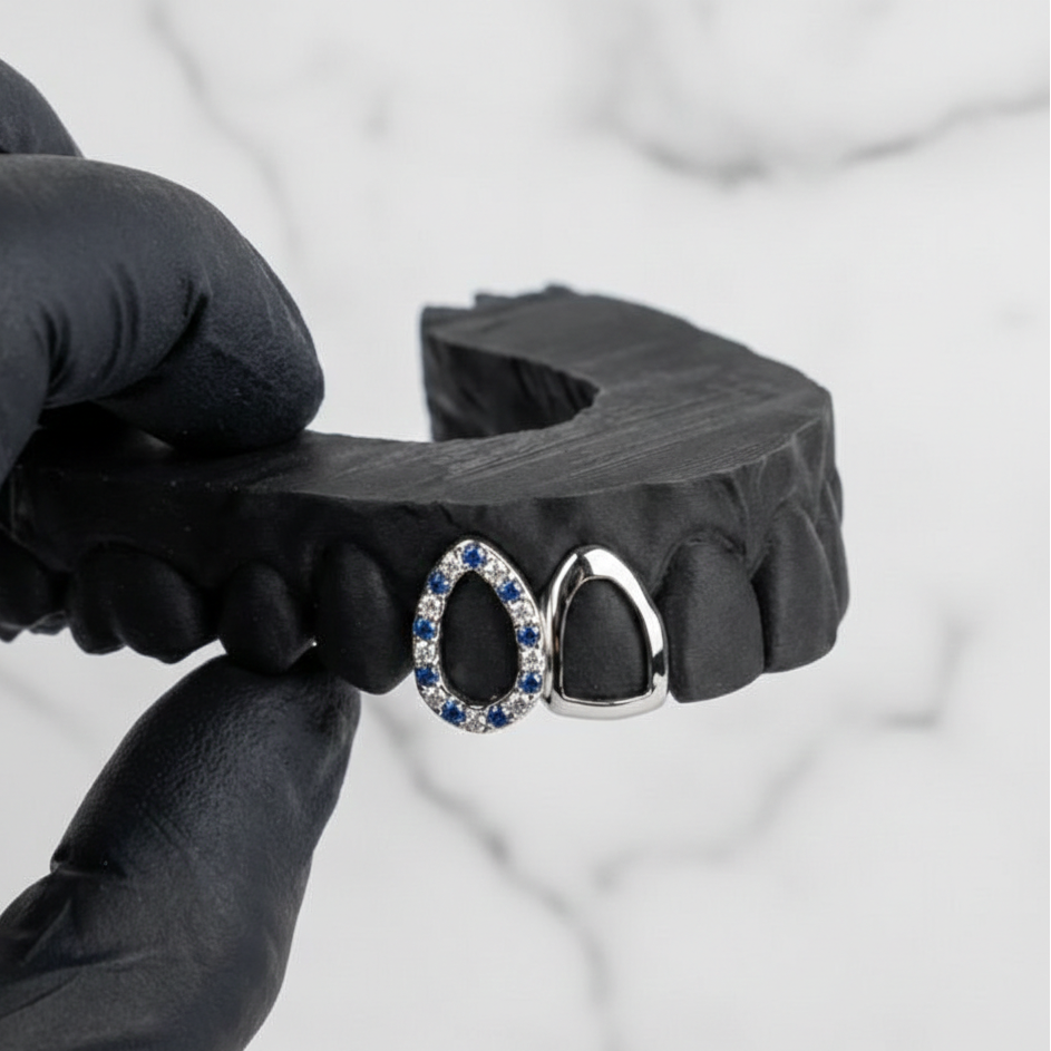At HC Grillz, we specialise in handcrafted gold grillz and silver grillz designed for a perfect, custom fit. Every piece is made with real materials — solid gold, sterling silver, and genuine diamonds — so your grillz never tarnish, fade, or lose shine. Unlike cheap plated options, our custom grillz are built to last and backed by a lifetime warranty.