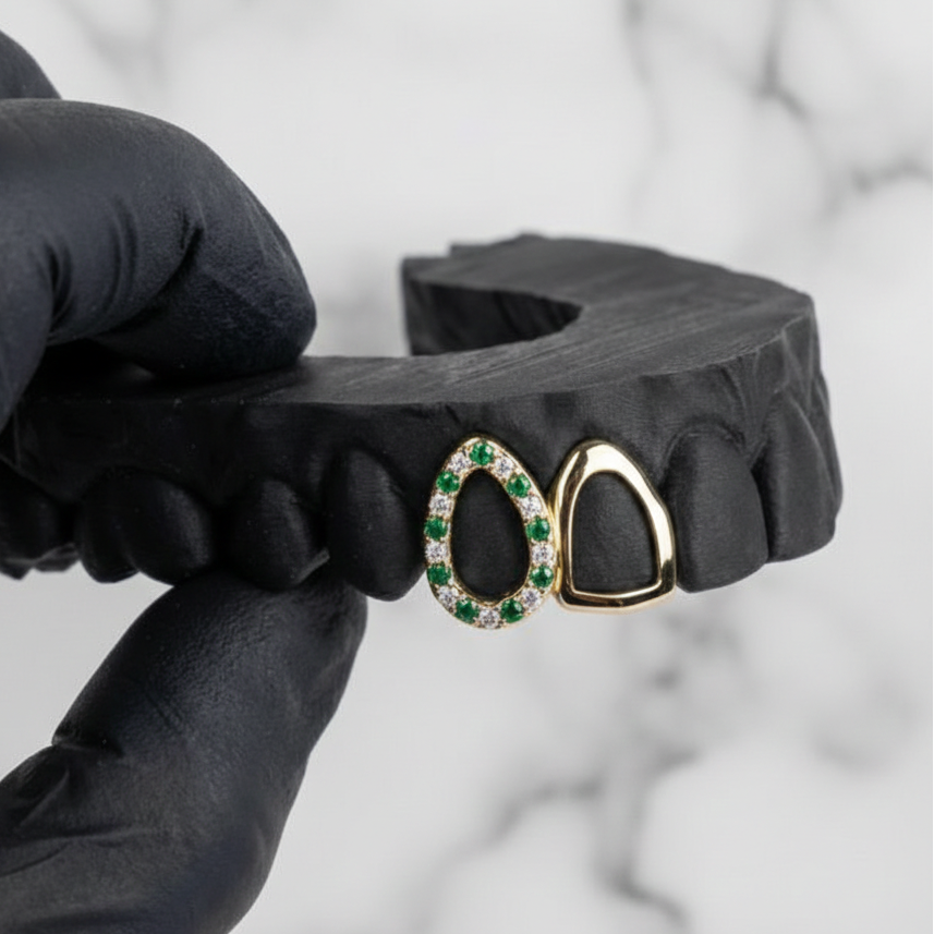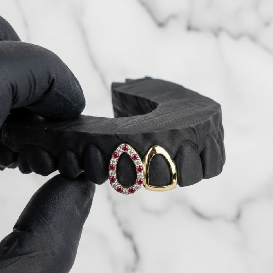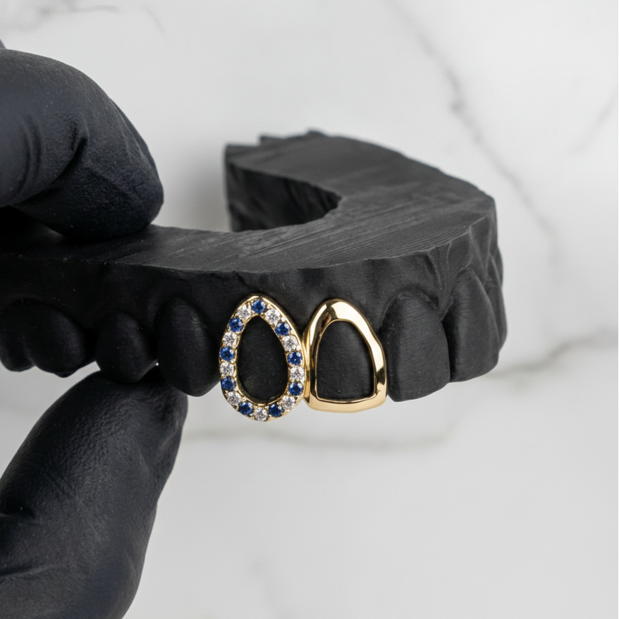 We create everything from simple gold grillz and silver grillz to fully iced-out diamond grillz. Whether you want a single tooth cap, a six-piece set, or a full eight-top, eight-bottom grill, HC Grillz can make it. Our designs are inspired by hip-hop, streetwear, and luxury culture, making them the ultimate statement piece.